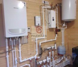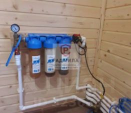 Водопровод (ХВС) скважина с кессоном (глубина 45 м), тройная очистка; ГВС котел установлен газовый двухконтурный, + электрический (3-и режима отопления), так же установлен электрический бойлер на 100 л.