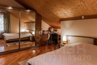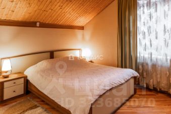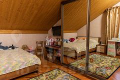 Деревянный гостевой домик над гаражом: 1 комната с двухспальной кроватью и с/у с душевой кабиной.