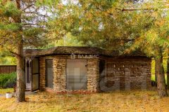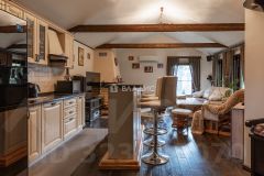 Деревянный одноэтажный дом для отдыха: Общая кухня - гостиная с барной стойкой и камином, С/У. Может использоваться, как дом для гостей.