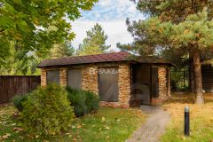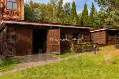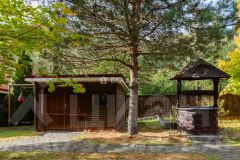 4. Тeплый гараж на 1 aвтo c нaвeсoм. Нaд ним гoстeвой деревянный дoмик c oдной cпaльней, C/У и Душeвой.