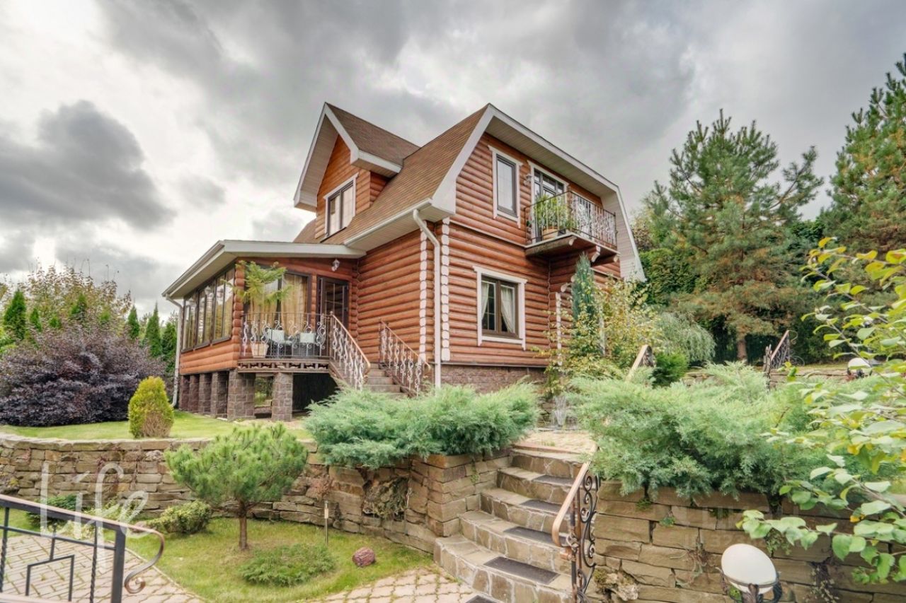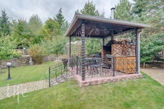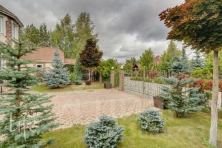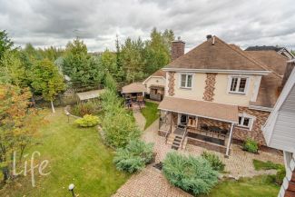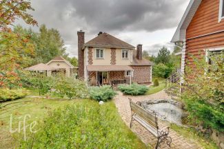 Участок правильной прямоугольной формы, с ландшафтным дизайном. Газон, декоративные деревья и кустарники, садовые деревья, декоративный пруд. На территории, помимо основного дома, расположены деревянный дом, гараж на два автомобиля, беседка, теплица.