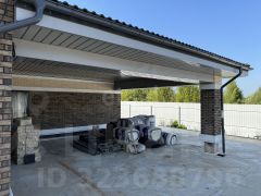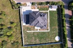 Дом расположен на уже распланированном участке правильной формы с забетонированными под укладку плитки дорожками и зоной парковки на несколько автомобилей. Площадь участка 2440м2.