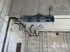 Дом находится на стадии предчистовой отделки, Внутри дома уже проложено больше 50 силовых линий, 3,5 км электрических кабелей и более 300 м слаботочных, установлено более 200 подрозетников, более 100 модулей в распределительных щитах, собственная система заземления.