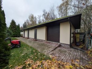 Хозблок одноэтажное строение из пеноблока с гаражом для садовой техники, жилым помещением для помощника по хозяйству, комнатой с оборудованием для водоподготовки, комнатой с отопительным оборудованием (печь).