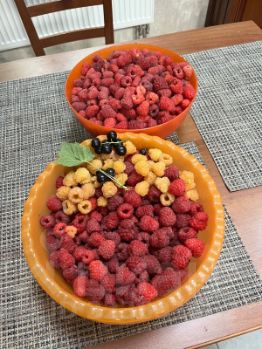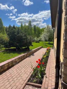 Ухоженный газон, около 30 плодовых деревьев (районированная яблоня и груша с прекрасной плодоносностью), плодовые (малина, красная и черная смородина, голубика, ежевика, крыжовник) и декоративные кустарники, многолетние цветы.