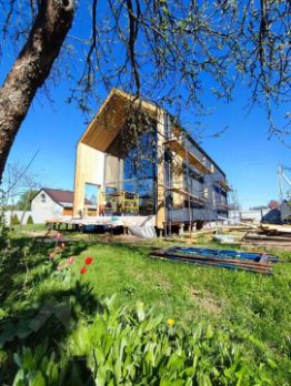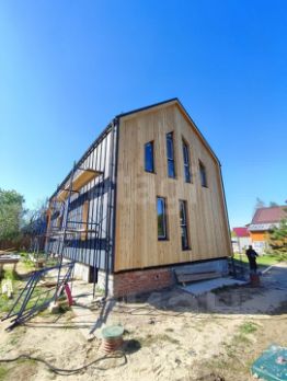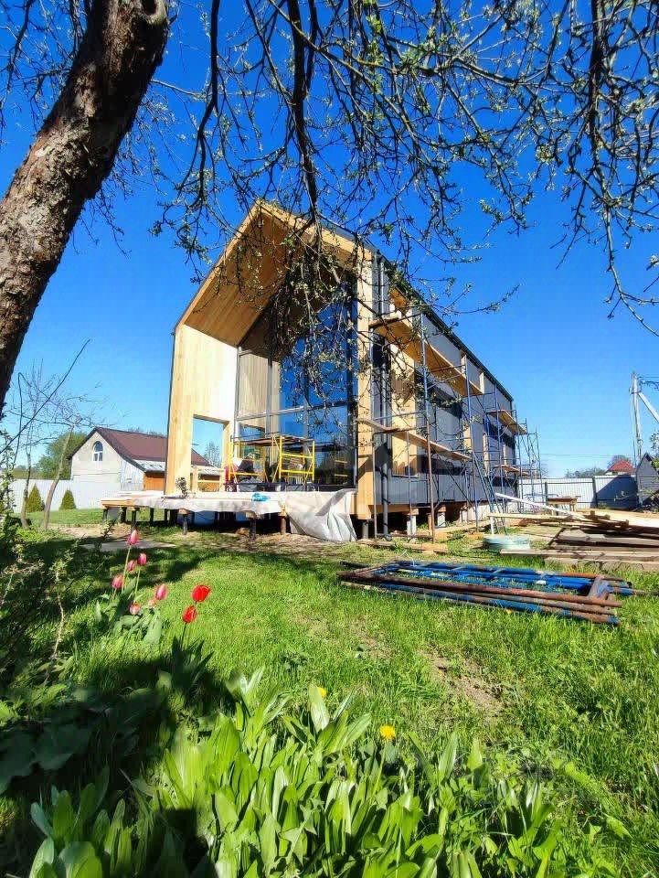 Уютный каркасный барнхаус 135 м.кв. с террасой 50 м.кв. и благоустроенным участком в живописном месте всего в 200 метрах от реки Лопасня.