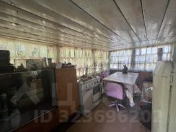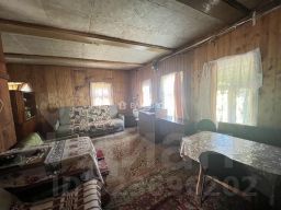 Крепкий бревечнатый дом с террасой и верандами, а также большой жилой комнатой и кухонной зоной.