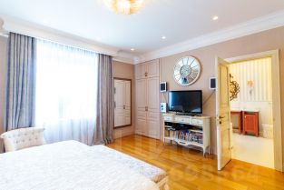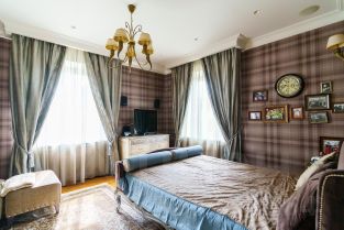 - Стены: Декоративная штукатурка, стойкая к повреждениям; английские обои в спальных комнатах.