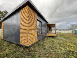 ДОМ: Общая площадь застройки 148 метров с верандойна участке 7соток.Теплая жилая площадь дома 128 метров. В доме две изолированные комнаты по 15 и 15 метров и гостиная-кухня - 42 метра, тераса 20 метров. Фундамент дома свайно-винтовой, глубиной 2 метра, сваи - 108 мм. Отделка дома и веранды деревом хвойных пород по специальной технологии обработки. Панорамные окна выполнены с тройным остеклением из двухкамерного стеклопакета, фирмы MELLE MONBLAN NORD-70 с графитовой ламинацией. Дома построены в едином LOFT-стиле, с применением современных и экологически безопасных материалов, что подтверждается соответствующими сертификатами СанПин и пожарной безопасности.