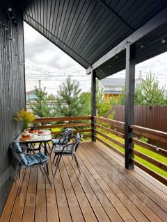 • Дом обшит скандинавской доской с поднятым ворсом , веранды и балконы из террасной доски