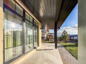Огороженный участок правильной прямоугольной формы, покрытый рулонным газоном премиального класса. Ворота автоматические. Высажены туи, ели. Проведено ландшафтное освещение, ливневка и дренажное покрытие. Парковка под навесом на 3 автомобиля.