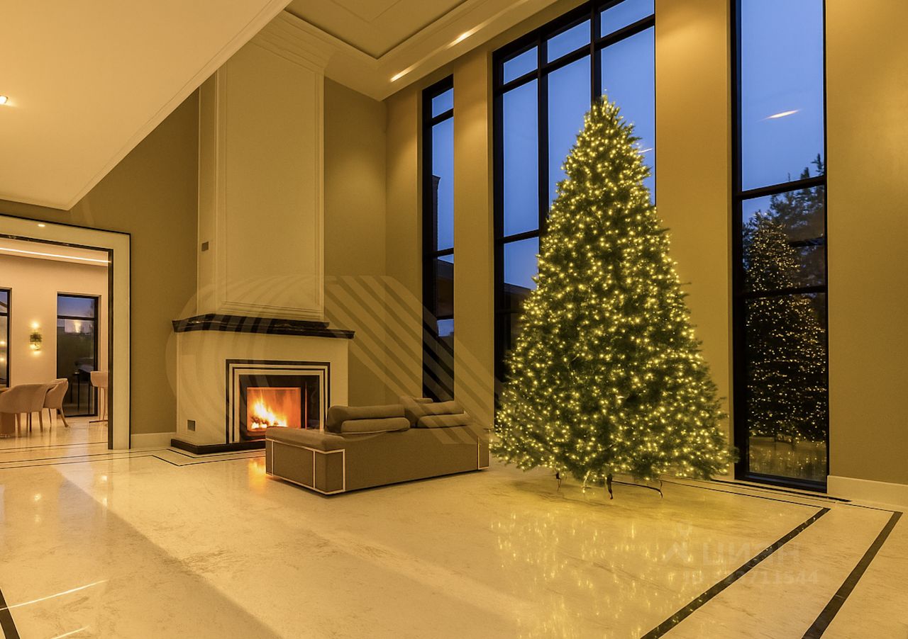 2. Невероятная гостиная с 7-метровыми потолками и камином. Представьте, как шикарно там будет смотреться большая новогодняя елка.
