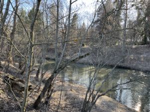 Вдоль поселка протекает речка, за ней лес с живописным видом на природу.