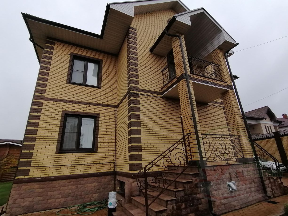 Дом построен из кирпича, что гарантирует его долговечность и надёжность, высокие потолки более 3-х метров. В доме выполнен дизайнерский ремонт: в гостинной на стене написана картина художником по спец.заказу, кованная лестница со ступеньками из дерева изготовлена по индивидуальному проекту. Общая площадь дома составляет 423,7 кв. м - здесь достаточно места для комфортной жизни.