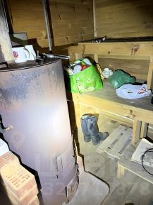 Дом стоит на ленточном фундаменте с бетонной плитой в основании. Есть камин, отделано помещение для кухни (также можно сделать санузел). Есть погреб глубиной 2 м.