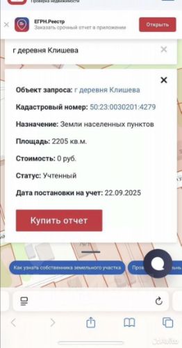 Продаю прекрасный,ровный участок,22 соток в д.Клишева,рядом с Раменским!На данном участке можно построить капитальный дом и не только! Участок ровный,прямоугольной формы,сухой, готов к застройке,также расположен очень старый дом,он не зарегистрирован.В деревне развитая инфраструктура:магазины,детский сад,школа спорткомплекс.Автобусная остановка,и шаговой доступности.Можно подвезти газ магистральный,и подключено электричество 15 кВт,есть колодец около 50м.Также можно участок смело поделить на 2 и на 3 участка!Удобные заезды и подъезды.Оперативный показ!Звоните!ТОРГ НА МЕСТЕ!