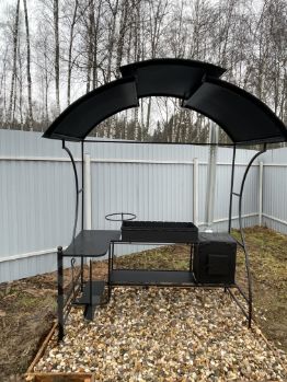 Зона для барбекю (установлен шикарный мангал) отсыпана площадка и паркочочное места 2шт щебнем, так же отсыпана отмостка вокруг дома.