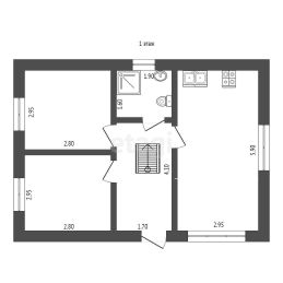 - Площадь дома: 41,5 м2 первый этаж, 35 м2 второй.