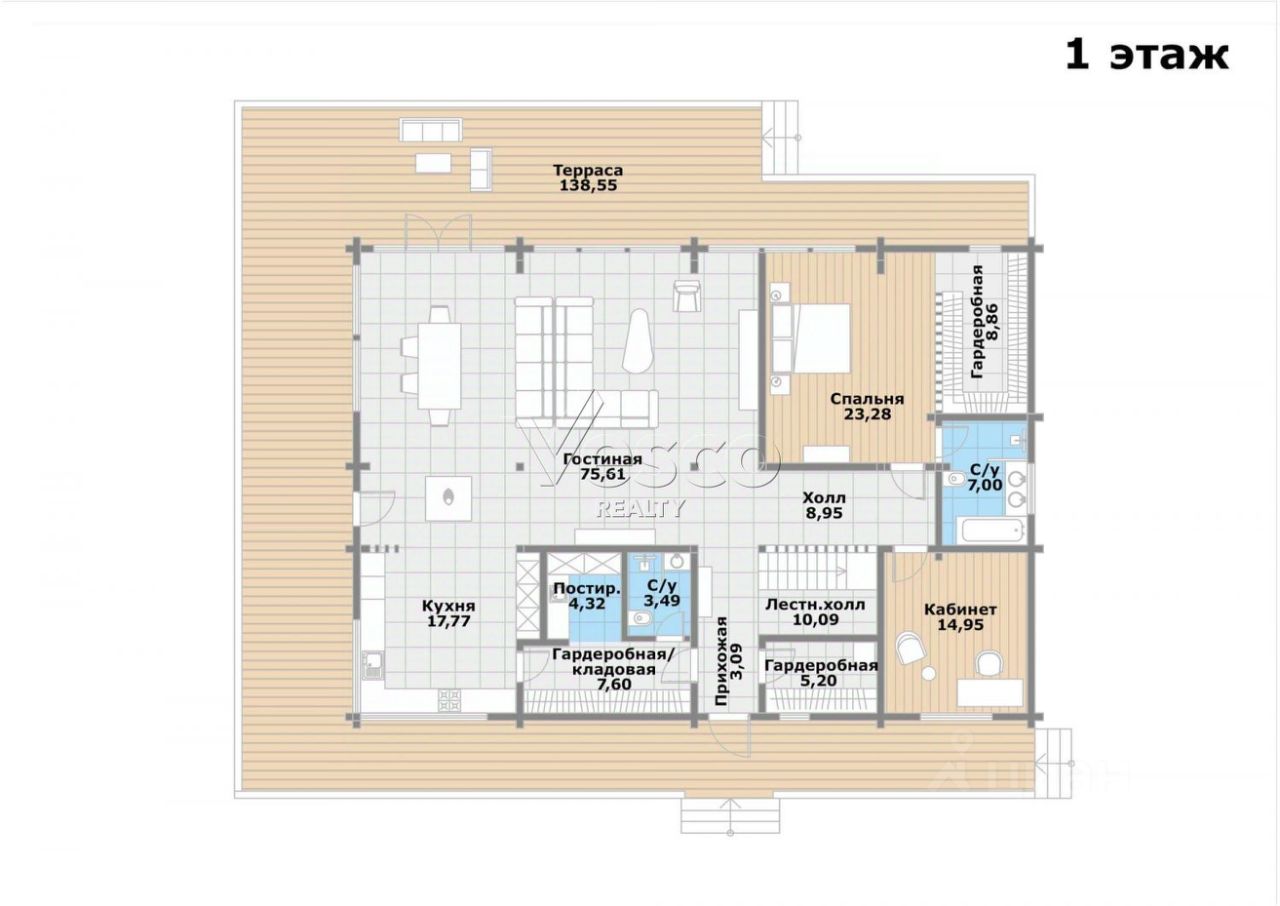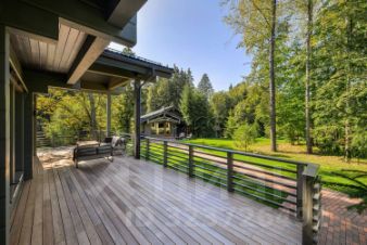 Лот 102948. Коттеджный поселок "Покровское-Рубцово" Современный деревянный дом в стиле альпийского шале площадью 380 кв.м на участке 25 соток с панорамными окнами и дизайнерской отделкой в камерном коттеджном поселке Покровское-Рубцово в 38 км от МКАД по Новорижскому шоссе. В доме: 5 спален со своими ванными и выходами на балкон и террасы, просторная гостиная, стильная кухня с большим угловым окном, столовая с примыкающей к ней хозяйственной комнатой, гардеробные комнаты и места для хранения, котельная и опоясывающая дом просторная терраса. На участке также расположены: 1) современный гараж (36,6 кв.м) на 2 машиноместа под навесом (с комнатой с с/у для персонала, кладовой и котельной), 2) банный комплекс (48 кв.м) с парной, хамамом, душевой, с/у, кухней-гостиной. Из окон парной открывается вид на еловый лес. Особенности: новый дом (2025 года постройки), участок со взрослыми деревьями, окружение - лес, панорамные окна, современный островной дровяной камин, из окон гостиной и спален открывается великолепный вид на парк, приточно-вытяжная вентиляция и кондиционирование, система увлажнения воздуха во всех помещениях. ПЛАНИРОВКА 1 этаж: Общие помещения: гостиная-столовая (75,6), кухня (17,8), прихожая (3,1), коридор (9), крыльцо (40,4), терраса (98,15), с/у (3,5), лестничный холл (10,1). Спальня (15) с ванной комнатой (7) и гардеробной (8,9). Технические помещения: гардеробная-прачечная (11,9), котельная (5,2). 2 этаж: Холл (6,5), тамбур (3,4), гардеробная (2,7), ванная комната (4,8). Спальня 1 (24,3) с ванной комнатой (5,2) и спальня 2 (28,1), обе с выходами на балкон (8,9). Спальня 3 (21,5) с выходом на балкон (9,1). Банный комплекс: Комната отдыха (27,4), парная (5,9), хамам (4,9), душевая с раздевалкой (7,7), с/у (1,5), ТП (1). Гараж: Комната персонала с ванной комнатой (12,5), кладовая (11,9), котельная (12,2). Навес на 2 м/м. МАТЕРИАЛЫ И БРЕНДЫ Фасад: лиственница Кухонная техника Smeg Акустика Lithe Audio Проектор JVC (Япония) ИНЖЕНЕРИЯ И АВТОМАТИЗАЦИЯ Климат-контроль: интегрированное управление отоплением, охлаждением и вентиляцией Теплые полы: программируемый нагрев по зонам и расписанию Освещение: умные сценарии и диммирование Автоматическое управление шторами и окнами Электроснабжение: автоматика ABB (Германия) Электрофурнитура: Lithoss Диспетчеризация инженерных систем Wi-Fi с бесшовным покрытием Видеонаблюдение: интеллектуальная видеоаналитика, масштабируемость Контроль доступа: домофония Приточно-вытяжная вентиляция с увлажнением Климатическая система Breezart КОММУНИКАЦИИ Подземное электричество (нет проводов на столбах) Мощность 25 кВт Центральное водоснабжение Центральная канализация Магистральный газ Оптоволоконный интернет О ПОСЕЛКЕ Коттеджный поселок "Покровское-Рубцово" расположился на живописном берегу реки Истра, вблизи старинного дворянского имения, ранее известном как дом отдыха имени А.П. Чехова, на 38-м км Новорижского шоссе. Покровское-Рубцово - единственный поселок Подмосковья, расположенный в границах исторической усадьбы XVIII века. На территории - огромный парк площадью 7 га с рукотворным прудом, прогулочными аллеями, зданием старинной усадьбы и Покровской церковью 1745 года постройки. Поселок расположен на площади более 40 га, 85% территории - застроено в едином архитектурном эко-стиле современного шале. Большую часть поселка занимает смешанный лес усадебного типа. Инфраструктура поселка: главный усадебный дом, 2 открытых теннисн