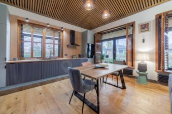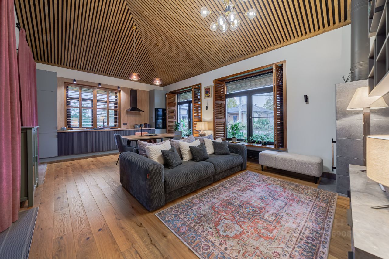 Дом оснащён всем необходимым для комфортной жизни: индивидуальная отделка и мебель из эко-материалов шаттерсы и подоконники ангарская сосна, напольное покрытие дуб Fenix, потолок реечный ручной работы из лиственницы.