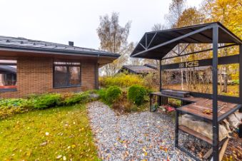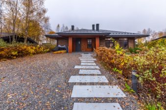 Дом возведён по авторскому проекту с использованием современных технологий: монолитный фундамент 300 мм, стеновой комплект керамический блок Porotherm, внешняя отделка облицовочный кирпич BRAER, планкен лиственница Prima, кровля фальцевая с двойным стоячим замком Satin Matt Grand Line, окна - электрообогреваемые и многофункциональные бренда Kaleva Design & Veka SoftLine.