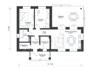 Планировка объекта - кухня-гостиная, 2 спальни на 1 этаже, веранда, мансардный этаж с 1 спальней, с/у, кладовая.