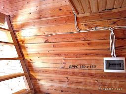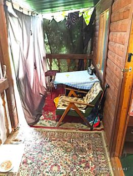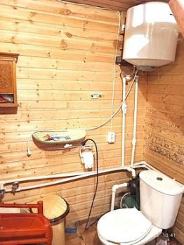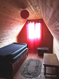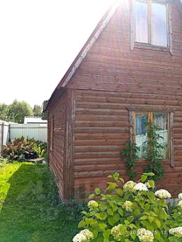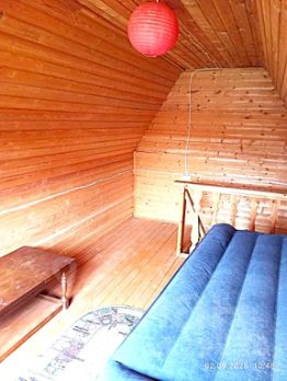 Дом - из бруса. Жилая площадь 60м (вместе с террасой). Внутри дома имеется сан.узел и душ. При входе веранда, на втором этаже мансарда. Строение на фото справа от дома хозблок.