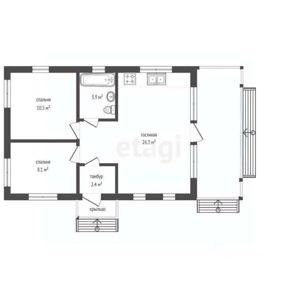 - Загородный дом с чистовой отделкой с 2-я спальнями, предназначенный для круглогодичного комфортного проживания семьи из 2-4 человек. Зоны спален разделены с зоной кухни-гостиной тамбуром и санузлом. Есть вариант планировки с сауной.