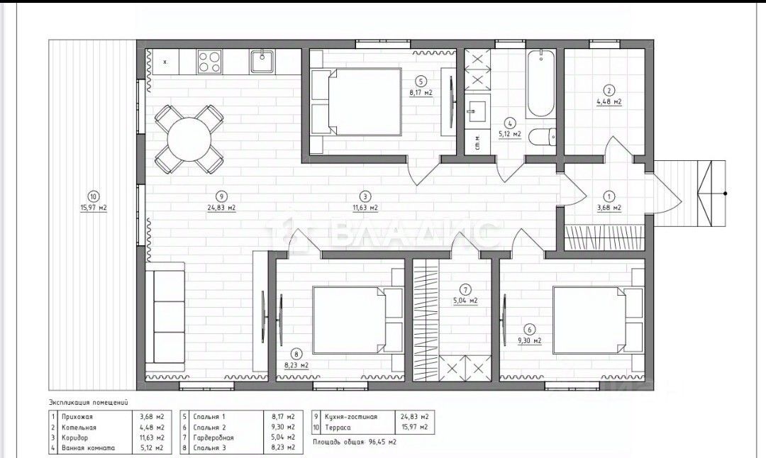 - Площадь комнат: 8,17 + 8,23 + 9,30 кв. м.