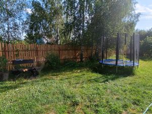 Участок не правильной формы 9 соток. Посажены плодовые яблони, голубика, жимолость, Гортензия, Ива, берёза,смородина,крыжовник. Из построек: сарай, душ,туалет. Скважина с технической водой и колодец с питьевой водой ( вода в дом не заведена) . Участок угловой, удобный заезд. В 5 минутах от дома есть водоём для купания.