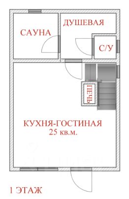 1-й этаж: кухня-гостиная, санузел, сауна;
