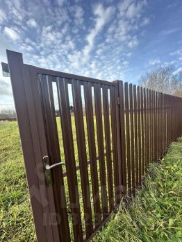 Ограждение: Участок полностью огорожен по периметру современным забором (комбинация профнастила и штакетника), что обеспечивает приватность и безопасность.