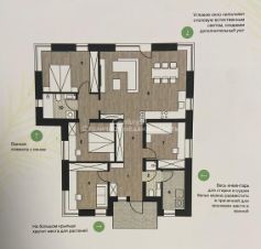 В доме 4 комнаты , кухня-гостинная, 2 санузла и прихожая .