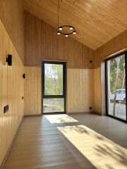 Готовый дом (дата постройки: сентябрь 2025) заводского производства от застройщика в авторском пocелке "Малaя Истpа" от Viventis в окружении леса и реки, в часе от езды от центра Москвы по Новорижскому шоссе (50 км от МКАД). Полностью построен и готов к проживанию Уникальный формат поселка всего 24 дома в едином архитектурном стиле с панорамным видом на вековой лес и реку воплощает мечту о загородном доме, тишине и единении с природой. Цена за готовый дом с отделкой под ключ участок Можно взять в семейную ипотеку с ежемесячным платежом от 62 тыс. руб./мес. Ключевые характеристики: • Площадь дома 105,3 м2, жилая площадь - 67,5 м2 из которых 7,5 м2 - уютная антресоль, габариты дома - 15,3*7,1 м • Дом с отделкой "под ключ" в комплектации Comfort: полностью внутренняя отделка, теплые полы, свет, электрика, сантехника - заезжай и живи. •Участок 7,6 соток (кад. номер 50:08:0060175:506, участок 11) с коммуникациями: электричество 30 кВт уже на участке, высокоскоростной интернет, круглосуточная охрана, благоустройство в коттеджном поселке Архитектура и Планировка: • Современная архитектура и дизайн, высокие потолки 4.0 метра, панорамные окна 2.3м, премиальные отделочные материалы • Рациональная планировка для семьи из 3-5 человек: просторная гостиная 24 м2, две спальни по 12 м2, просторная веранда, небольшой уютный второй этаж, санузел, техническое помещение • Высочайшее качество конструктивных и инженерных решений - теплоизоляция стен 200 мм, полов 250 мм с перекрестным утеплением. Премиальные изоляционные материалы обеспечивают долговечность дома, защиту от внешних воздействий, насекомых и грызунов • Дом идеально подходит для круглогодичного проживания Гарантия на дом от производителя: • 10 лет на конструктив дома, 2 года на отделку Инфраструктура поселка: • Полностью закрытая территория • Круглосуточная видеоохрана • Электричество 30 кВт уже заведено на участок • Высокоскоростной интернет уже заведен на участок • Авторское освещение территории • В 2026 году планируется открытие общественной зоны и SPA комплекса на территории поселка Расположение: • В 1 часе езды от Москвы: 50км от МКАД по Новорижскому шоссе • 15 мин на авто до центра города Истра со всей инфраструктурой • В 10 минутах на авто магазин "Перекресток", Истринское водохранилище, конный клуб • В 5 минутах на авто гостиница Hilton Garden Inn с ресторанами, бассейном и спа Наше производство: • Мы производим дома на собственном производстве, опыт 8 лет в prefab домостроении, 800 построенных домов • Без стройки, без переживаний, без превышения бюджетов - по фиксированной цене с гарантией от производителя Оцените качество наших домов и уникальную атмосферу поселка! Ждем вас каждый день с 10:00 до 19:00 Напишите или позвоните нам, чтобы записаться на просмотр и получить полную презентацию дома и поселка. Будем Вам очень рады.