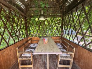 Сделана уютная тенистая беседка в винограде, и зона отдыха. Также есть новый уличный туалет.