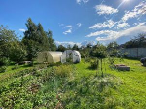 — Плодовые деревья (10-летние, уже плодоносят), малина, клубника, чёрная и красная смородина.