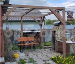 Жилой дом, размер 6 на 8, брус, обшит сайдингом, два этажа. На первом этаже застекленная веранда, большая комната, маленькая комната, настоящая печь. На втором ( лестница удобная) большая комната. Дом сухой и теплый, стеклопакеты, вагонка покрашена. Дом на фундаменте. Крышу перестелили два года назад.