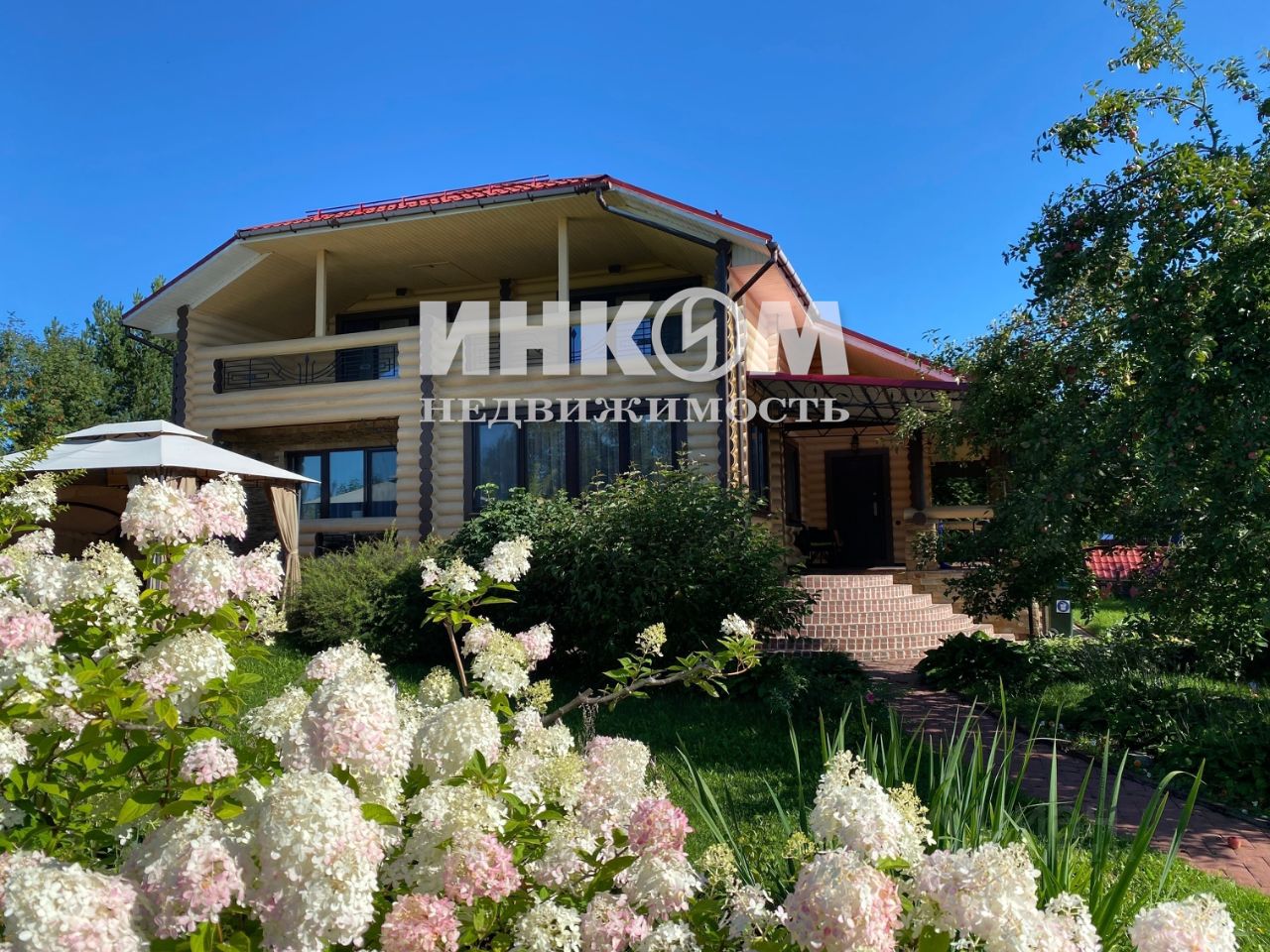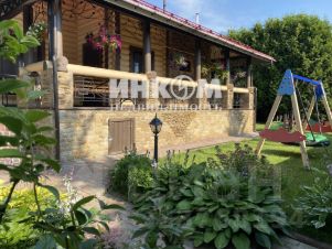 На ухоженной территории вокруг дома с ландшафтным дизайном (газон, декоративные многолетние растения, дорожки из натурального камня, уличное освещение, системы полива и дренажа) расположены: бревенчатая баня со всеми удобствами (8,5х6 м.), гараж с автоматическими воротами (1 м/м), просторная круглогодичная зона барбекю, оборудованные детская и спортивная площадки, хозблок. Удобный круглогодичный заезд на территорию с двух сторон. С внешней стороны посажены хвойные и лиственные деревья. Приятные соседи, дома которых на значительном удалении.