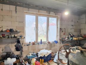 Частично выполнены межкомнатные перегородки, электрика и отделка. Есть возможность для временного проживания рабочим- установлена плита, кухонная раковина, , унитаз, двери.