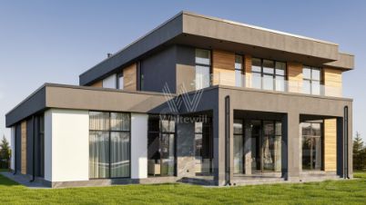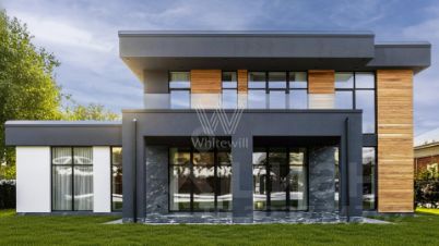 Millennium Park. Новый загородный дом площадью 523 м² расположен на участке 11,5 соток. Чёткие прямые линии и минималистичный дизайн фасада формируют выразительный и утончённый облик. В облицовке использованы контрастные материалы в сдержанных белых и тёмно-серых тонах с фактурой камня и дерева. Экстерьер подчеркивается декоративной подсветкой. Коттедж оснащён приточно-вытяжной вентиляцией, кондиционированием, подогревом полов и системой "умный дом".