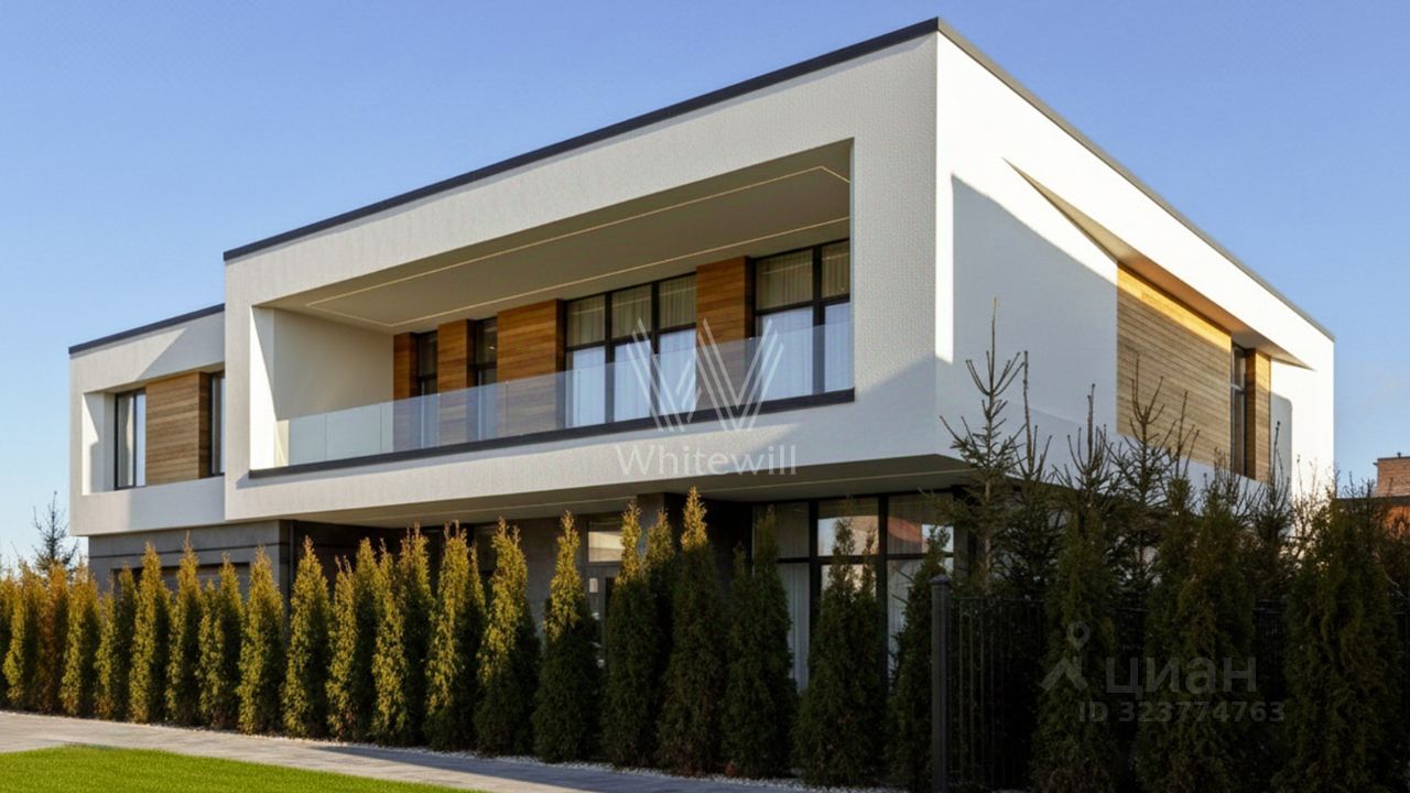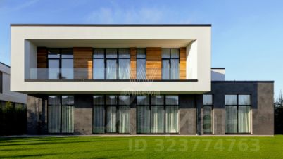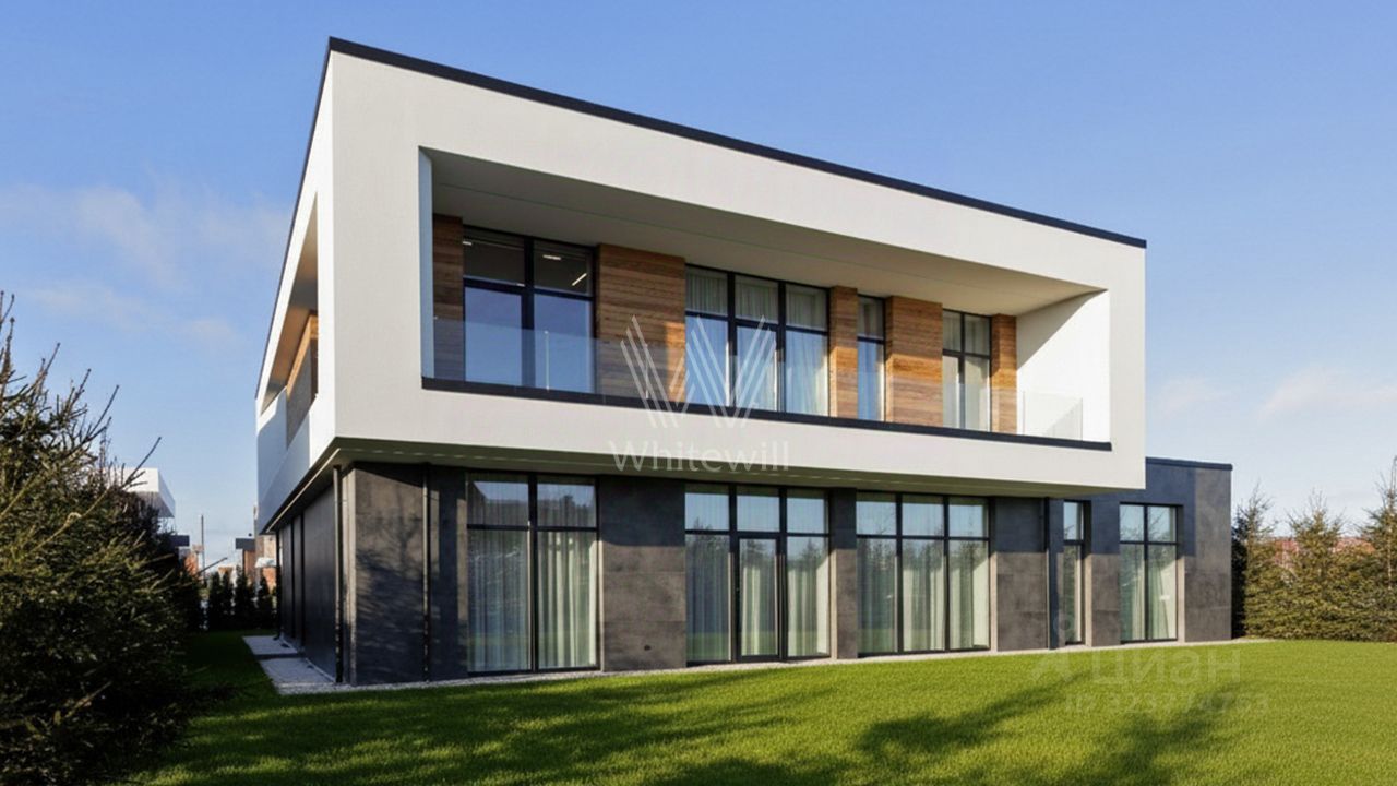 Миллениум Парк. Новый загородный дом площадью 523 м² расположен на участке 11,5 соток. Чёткие прямые линии и минималистичный дизайн фасада формируют выразительный и утончённый облик. В облицовке использованы контрастные материалы в сдержанных белых и тёмно-серых тонах с фактурой камня и дерева. Экстерьер подчеркивается декоративной подсветкой. Коттедж оснащён приточно-вытяжной вентиляцией, кондиционированием, подогревом полов и системой "умный дом".