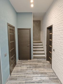 • Первый этаж: просторная прихожая, бойлерная, санузел с душевой, гардеробная, кухня-гостиная с выходом на приватный участок.