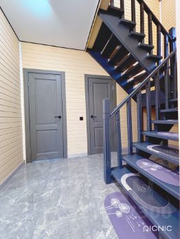 - Просторный дом: на первом этаже — кухня-гостиная 27 м², спальня, бойлерная, санузел с душем и раковиной
