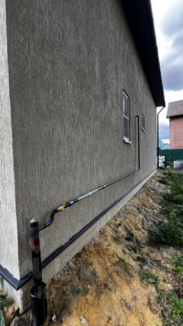 Фундамент - плита, стены блок 40, утепление минвата, штукатурка фасадная.
