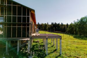 Из окон открываются виды на лес и альпийский луг территории сыроварни.