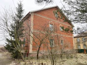 Земельный участок 23 сотки правильной формы. Кованая ограда с кирпичными столбами. Есть садовые деревья и кустарники, много взрослых хвойных деревьев. Большая площадка из брусчатки, ночное освещение, беседка. В задней части участка есть хоз. блок 30 м2 с готовым курятником. Соседи только с двух сторон.