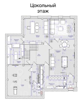 - Цокольный этаж: бильярдная, кабинет, спортзал, постирочная и кладовые.