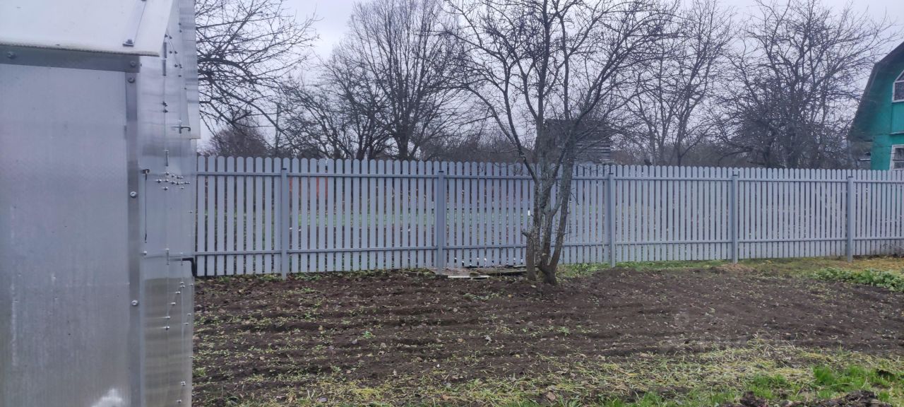 Провели свет - две трубостойки с фонарями. Один из которых с пультом управлением. Участок со всех сторон огорожен забором с фронтальной стороны новый с воротами и калиткой. Установили теплицу 3х4. Участок засеян газоной травой, выровнен трактором, корни и мусор вывезены.