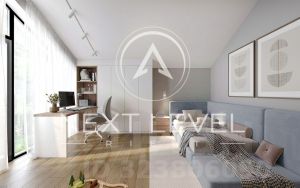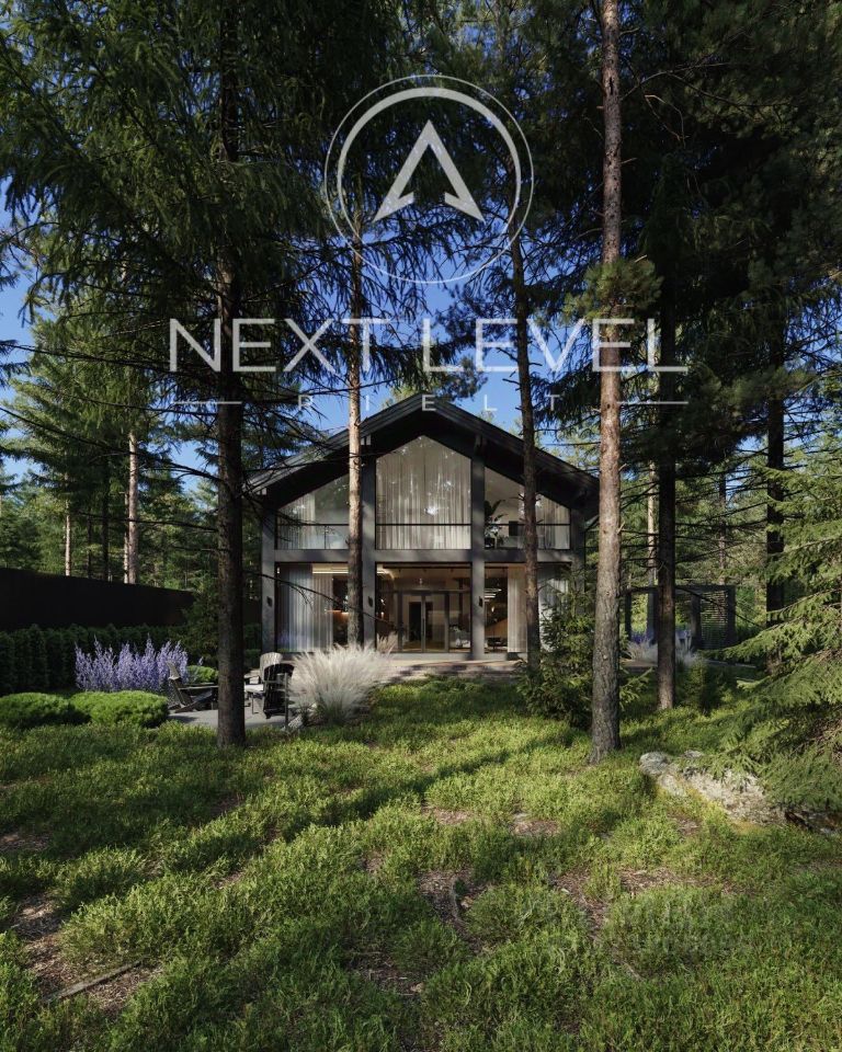 Этаж 2: 2 спальни с панорамным остеклением 17 и 21 м2, с которых предусмотрен выход на большой балкон, санузел 10 м2, + просторная мастер-спальня (37 м2), с панорамным остеклением и видом на лес (высота потолков в верхней точке, порядка 5м.) площадь спальни 43 м2 + площадь собственного санузла 12 м2 и гардеробной 8 м2 (имеется возможность, добавить в спальную комнату, ещё одну гардеробную).