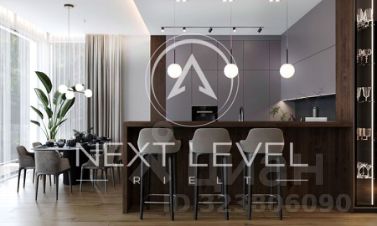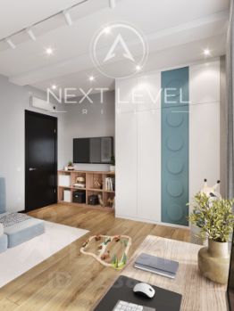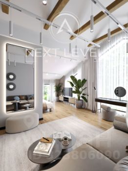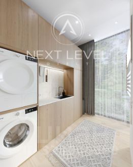 Этаж 1: просторная и светлая зона кухни-столовой, гостиной, общей площадью 82 м2, с выходом на террасу, гостевая спальня с гардеробной, сан. узел, котельная, гардеробная, постирочная.